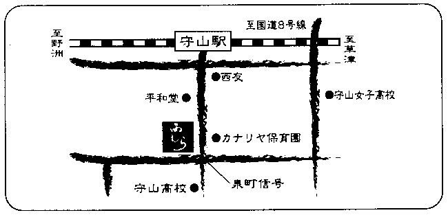 マップ・営業時間 店内 昼のメニュー 夜のメニュー 住所 滋賀県守山市守山二丁目3-7 アスティ上芝野102 TEL&FAX 077-582-7411 守山駅より銀座商店街を直進 徒歩10分 駐車場 店舗横に5台可 第2駐車場もあります。 営業時間 昼の部 11:30〜13:30 夜の部 17:30〜21:30 21:00(オーダーストップ) 定休日:日曜日 表紙へ